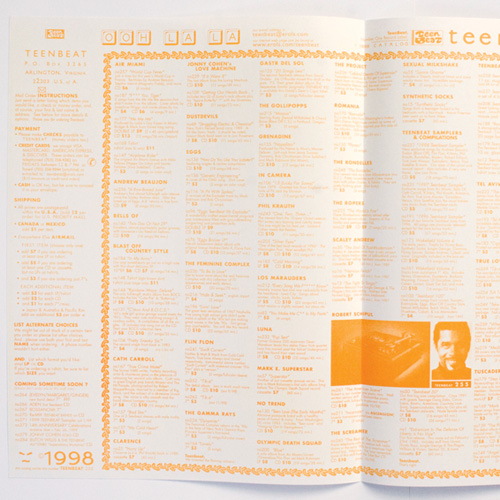 One of many Teen-Beat mail order catalogues printed to advertise our releases. These were sent out with mail orders and were inserted into record jackets and sleeves.